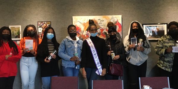 Girls with meeting facilitator, Taylor Williams, Howard County Pageant Winner and Health Advocate
